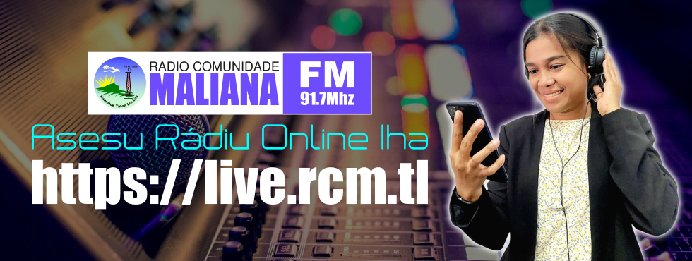 RCM - AtuálPrograma ne'e fornese atualizasaun notísia atuál, tantu lokál no internasionál sira, informasaun kona-ba eventu sira, no anúnsiu atividades. RCM - Talk ShowPrograma Talk Show ne'e oinsa aprezentadór sira bele diskute tópiku oioin, entrevista bainaka sira, no simu xamada sira hosi rona-na'in sira. RCM - MúzikaPrograma ne’e ba rona-na’in sira ne’ebé hakarak rona no dedika múzika, no intervista kona-ba tópiku ne’ebé relasiona ho múzika nian. SECOMS-ARKTL Hala’o Interkámbiu Ba Jornalista Rakom, Estudante No Manorin Sira By Radio Comunidade Maliana | 14 Oct 2025 Joaquina Seixas Eleitu Nu’udar Jestora Rádiu komunidade Maliana Períodu 2025-2029 By Radio Comunidade Maliana | 08 Aug 2025 SEKOMS fo Formasaun Téknika Plataforma Jornál Parede Dijitál ba Eskola Sekundária Jerál Públika Centrál Dom Martinho da Costa Lopes Maliana By Radio Comunidade Maliana | 07 Aug 2025 Deskansa ho Dame Jestór Radio Comunidade Maliana “Filomeno Gonçalves Magalhães” By Radio Comunidade Maliana | 24 Jul 2025 Ekipa TIK-SEKOMS fo Hela Formasaun Oinsa Jere Website ba iha Staff RCM By Administradór | 23 Jul 2025 Expedito Dias husu Radio Komunidade Maliana Tau Prioridade ba Problema Ne´ebé Komunidade Hasoru By Administradór | 17 Oct 2023 RAKOM Maliana 91,07 FM transimite to’o Hali-Wen Atambua By Administradór | 28 Dec 2022 SEKOMS apresia servisu Rádiu Komunidade Maliana By Administradór | 19 Jul 2022 SEKOMS husu Rádiu Komunidade serbí públiku ho responsabilidade By Radio Comunidade Maliana | 11 Mar 2022